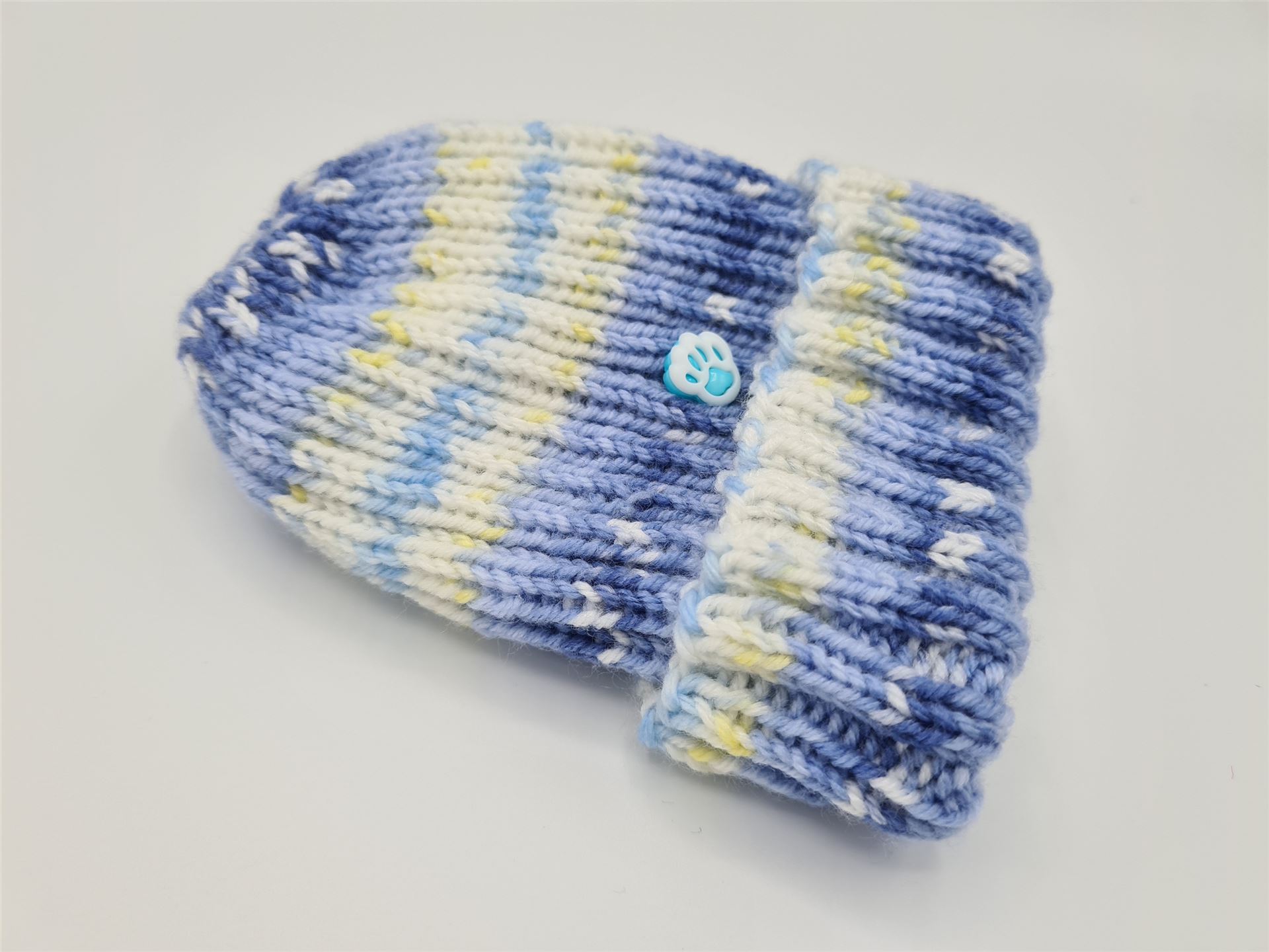 Blaues Mützchen aus Babywolle, im Bündchenmuster gestrickt. Kratzt nicht.